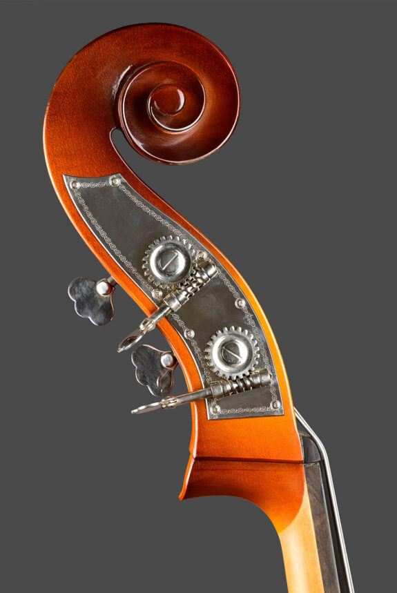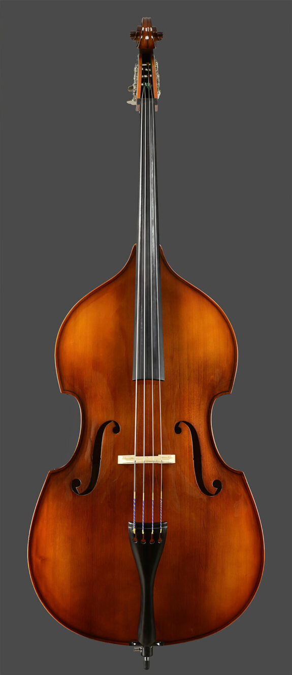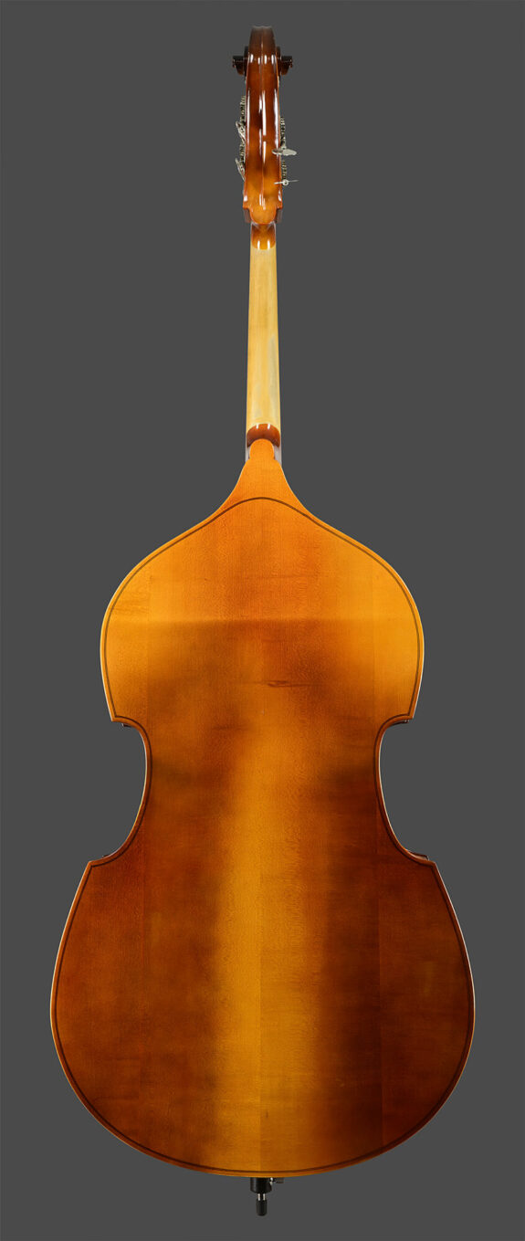 Dieser Bass wurde 2018 in Rumänien gefertigt. Dieses Vollholzinstrument hat einen flachen Boden aus Bergahorn und eine Decke aus feinjährig und gleichmäßig gewachsenem Fichtenholz. Ausgestattet ist es mit einer Tiroler Mechanik, einem höhenverstellbaren Steg, einem Wittner Saitenhalter und Helicoresaiten. Der Bass hat evtl. leichte Gebrauchsspuren, ist aber einwandfrei hergerichtet, rissfrei und mit Ebenholzgarnitur. Dank der geringen Obersattel- und Steghöhe ein ideales Instrument für die angehenden Bassisten.