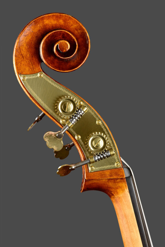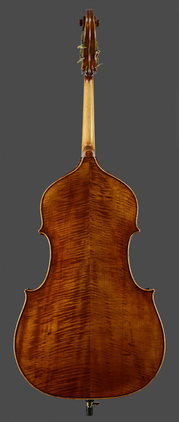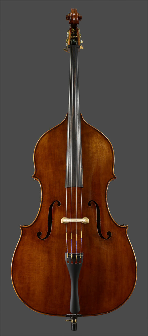 Dieser 1/4 Massivholzbass stammt aus der Schweiz, wo ich ihn 2006 erworben habe. Dieser 1/4 Kontrabass ist mit einer Tiroler Mechanik aus Messing und Helicoresaiten ausgestattet. Der Bass hat leichte Gebrauchsspuren, ist aber einwandfrei hergerichtet, rissfrei und mit Ebenholzgarnitur. Sehr gut spielbar dank der geringen Obersattel- und Steghöhe. Ein sehr gefälliges Instrument, das klingt trotz seiner geringen Größe schon wie ein „großer“ klingt.
