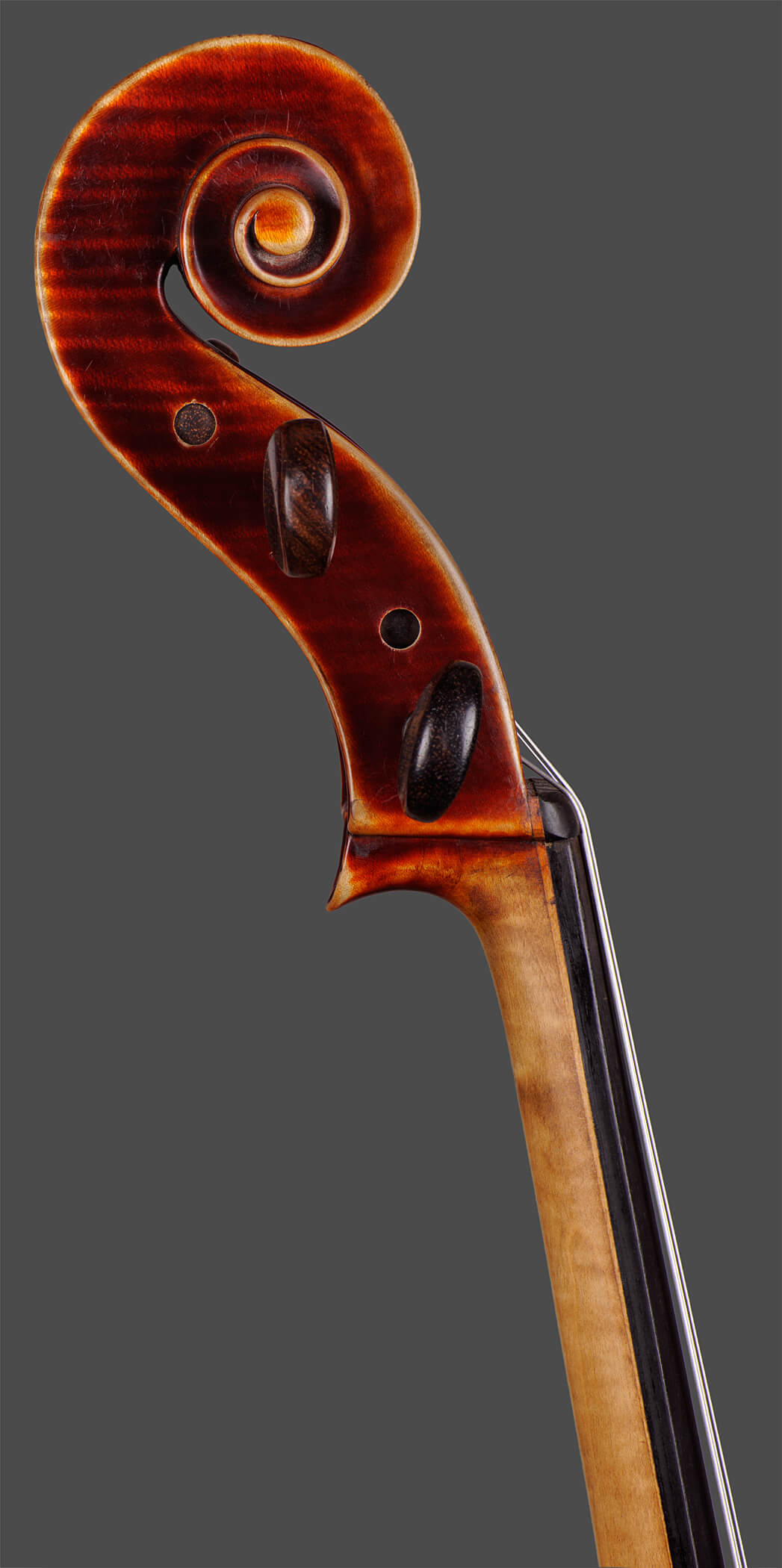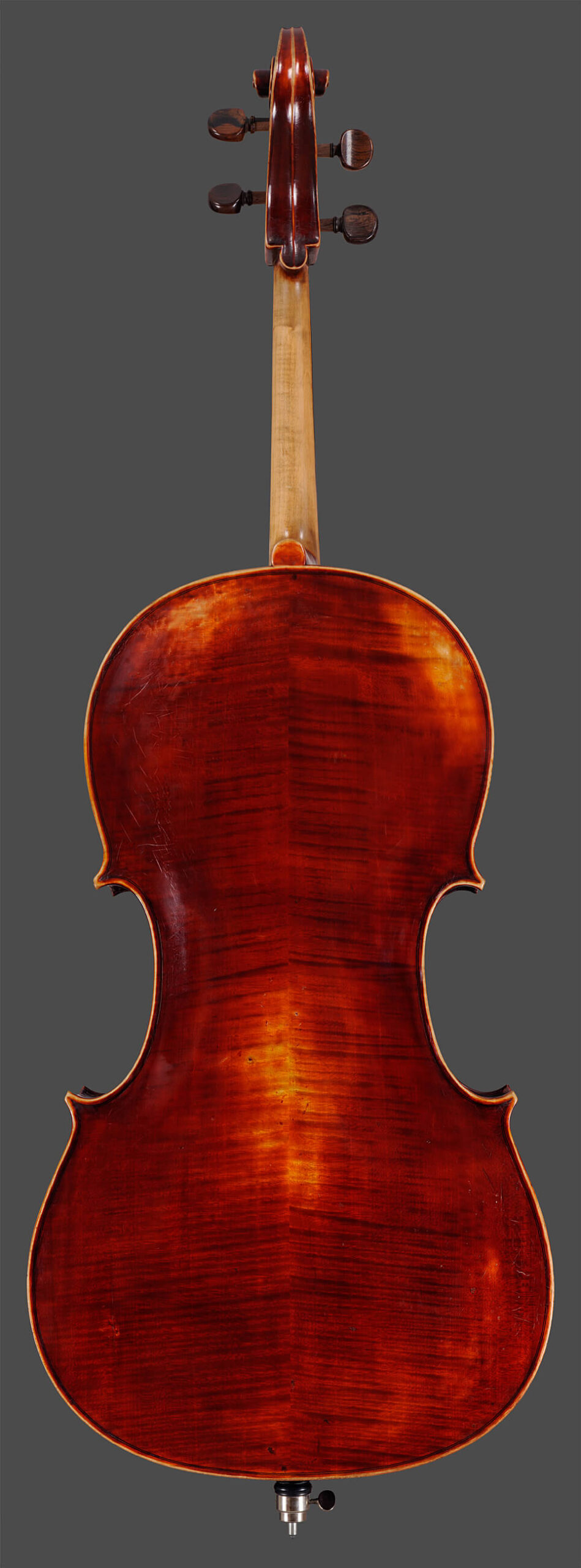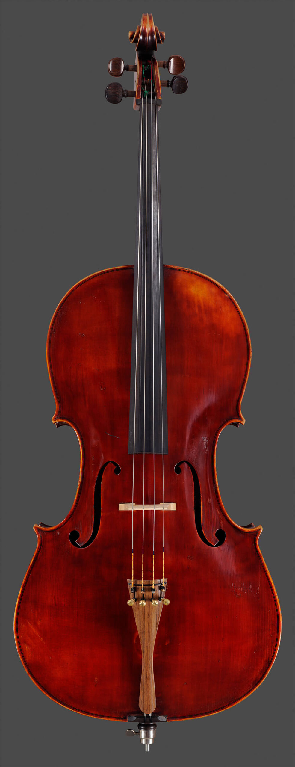Dieses interessante Cello trägt eine Etikette von Amati Mangenot Bordeaux. Es wurde Mitte des letzten Jahrhunderts in Frankreich, wahrscheinlich in Mirecourt hergestellt. Es ist mit Feinstimmerklangschrauben von Andreas Heinig (heinig moments innovation) ausgestattet, welche den charmanten, vollen Klang und die Ansprache unterstützen.
